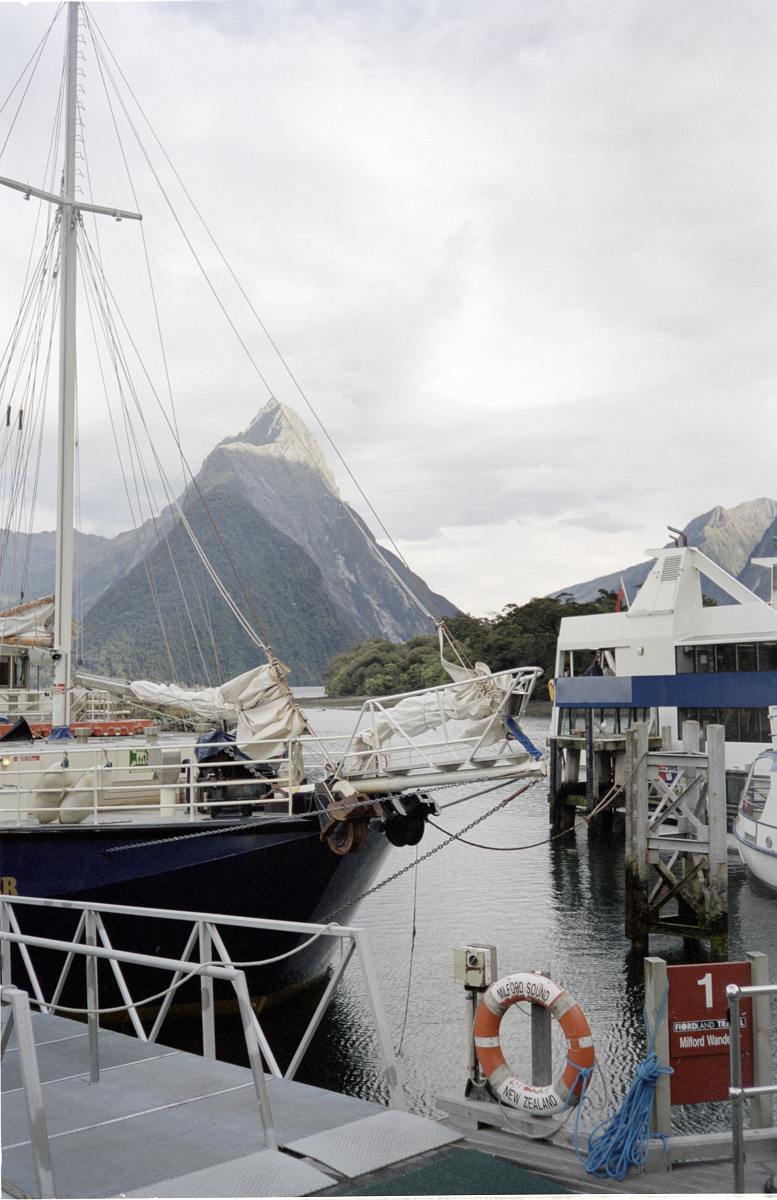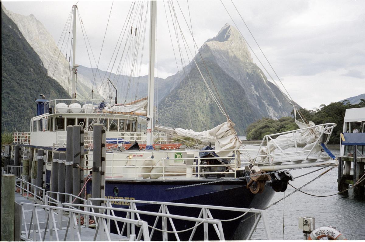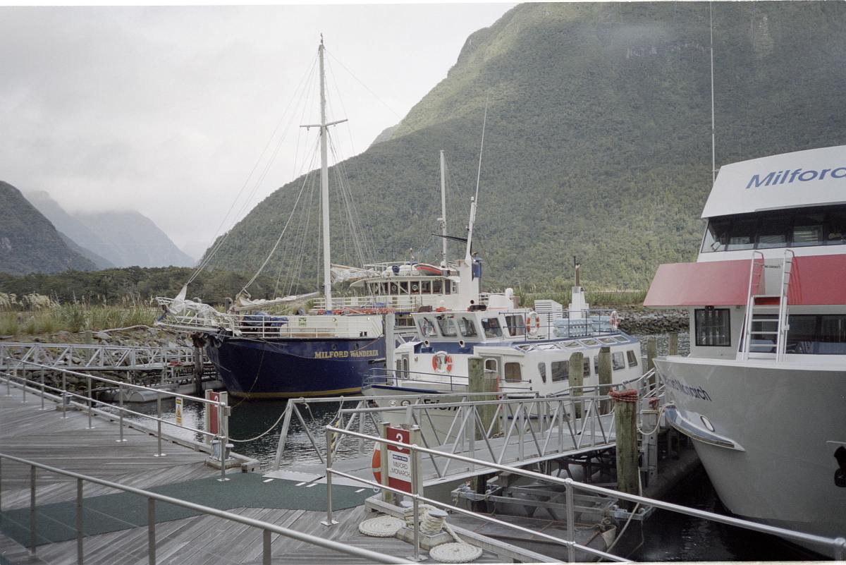 Wir gingen zum Fährgebäude und suchten uns ein passendes Schiff für die Fahrt auf dem Milford Sound.