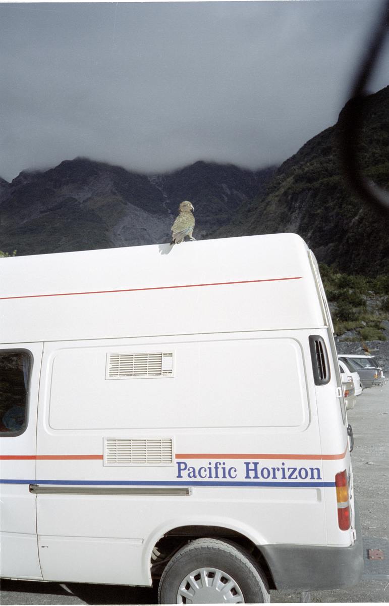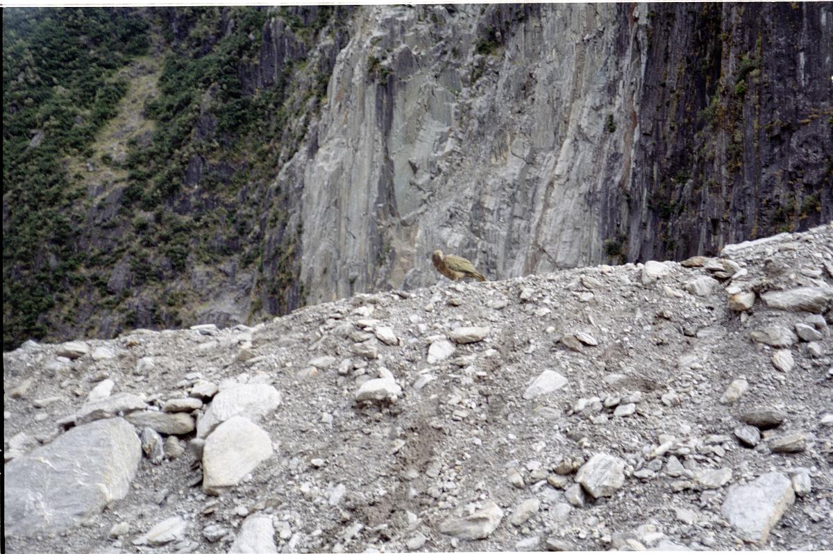 Der Kea ist ein rabengroßer Vogel mit einem Hakenschnabel. Der Vogel ist recht keck, hat nur wenig Scheu vor Menschen und taucht immer in kleinen Gruppen auf.